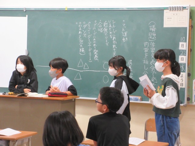 国語「クラスみんなで決めるには」の学習で、クラスみんなで学習発表会の内容について話し合いました。司会、記録係を中心に自分の考えを出し、話し合いの計画に従って話し合いました。みんな友達の発表をしっかり聞き、質問したり、より良い案を考えたりしました。
