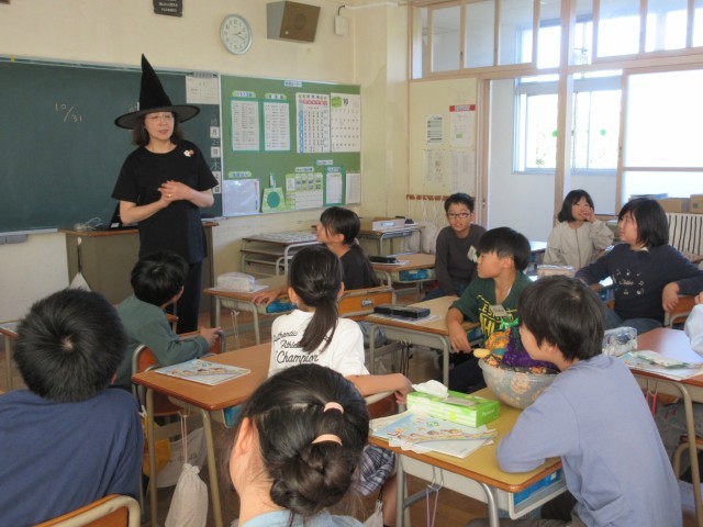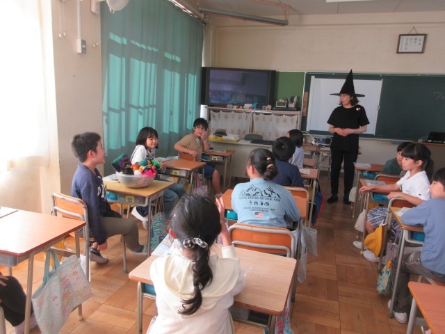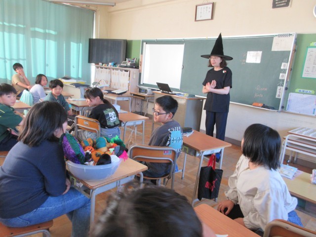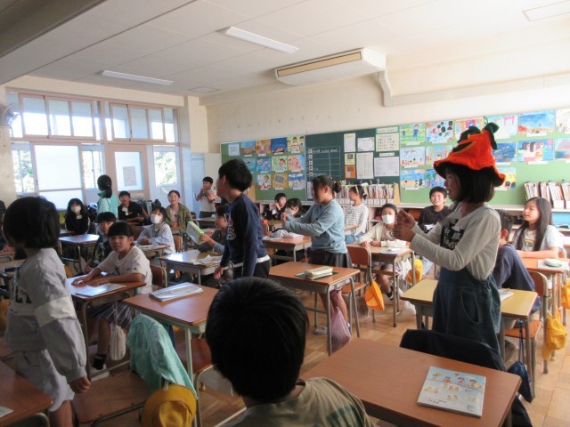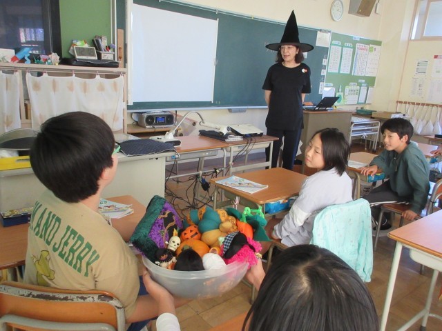 外国語の時間に「ハロウィン アクティビティ」を楽しみました。「パス ザ パンプキン」「ハロウィン じゃんけん」などのゲームをしました。ゲームをしながら英語に親しんでいました。