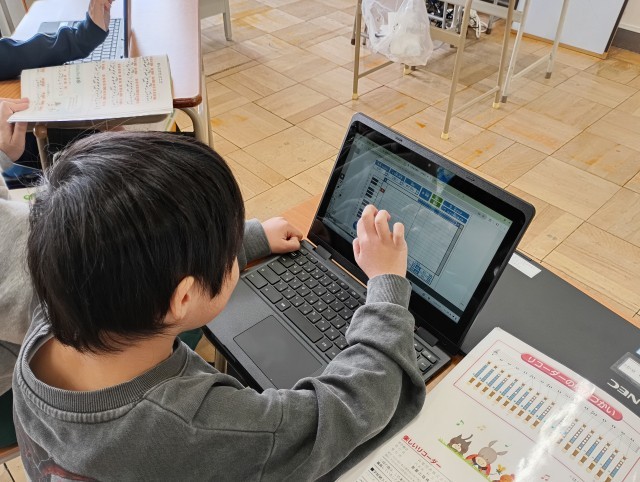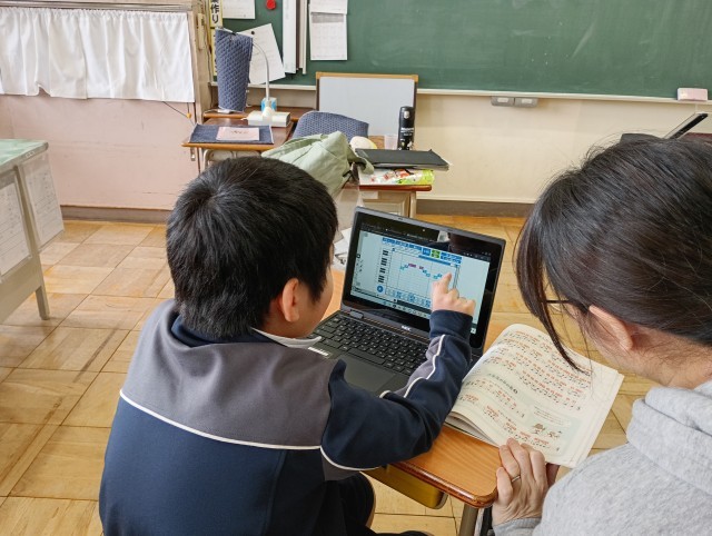 音楽の時間にクロームブックを使って作曲を行いました。みんな楽しそうでした。
