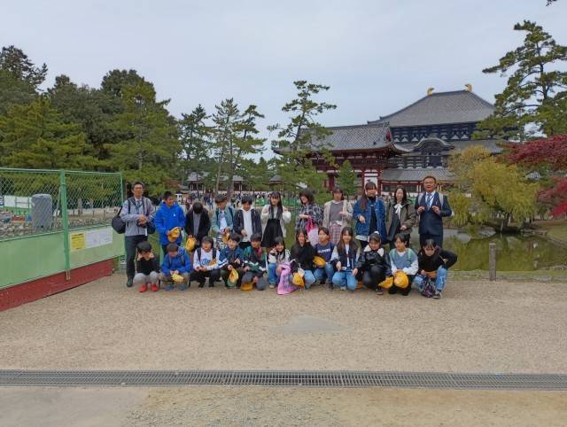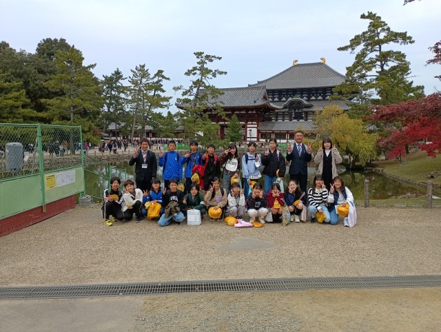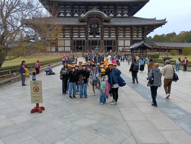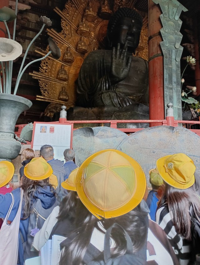 東大寺を見学しました。みんな大仏の大きさにびっくりです。次は三十三間堂へ向かいます。