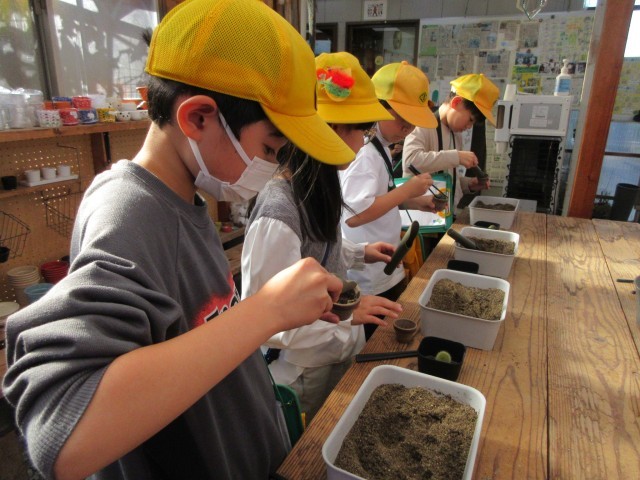 その後はサボテンの寄せ植え体験をしました。後日お家に持ち帰れるので、子どもたちはとても嬉しそうでした。