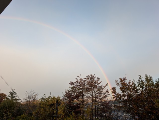朝、西の空に虹がかかっていました。