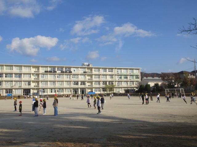 12月2日(火)は寒い中、朝の業前の時間に、運動場で「なかよしあそび」を行いました。