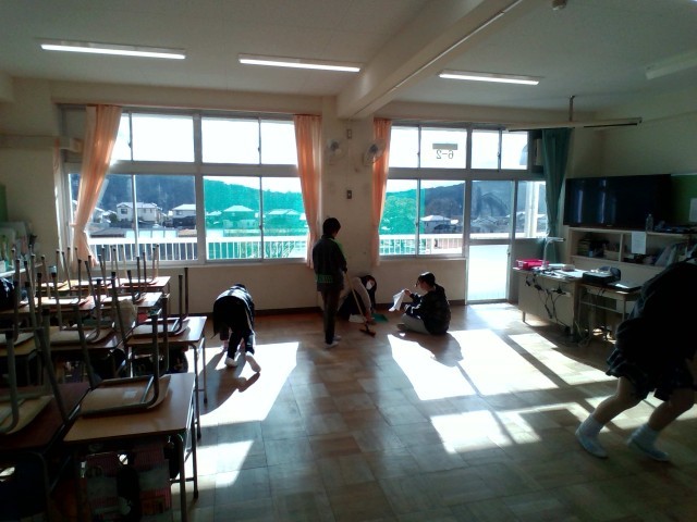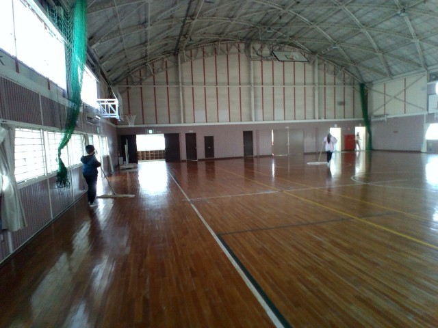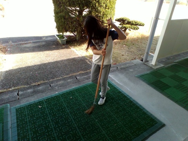 体育館や外は寒いですが、掃除を一生懸命やっています。