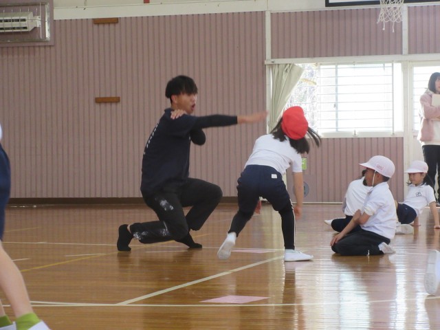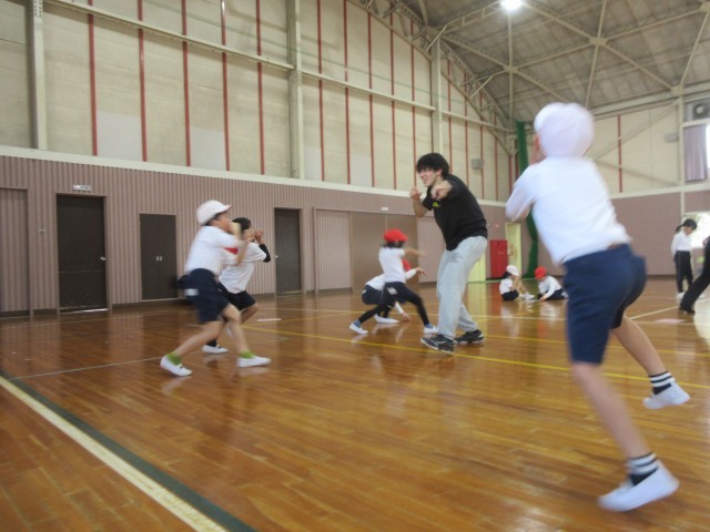 2年生の体育の表現活動を、成瀬先生に、「にんじゃしゅぎょうを楽しもう!」の授業をしていただきました。