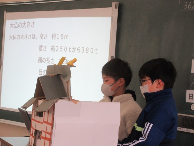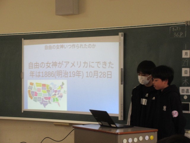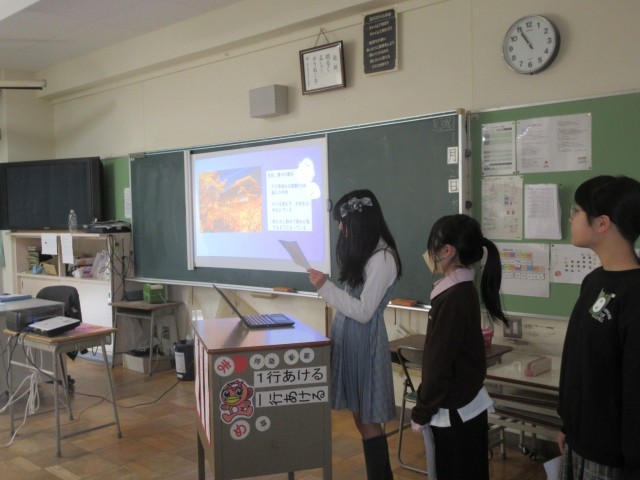 総合の時間で行った「国際理解」「修学旅行」で学んだことをスライドにして発表しました。