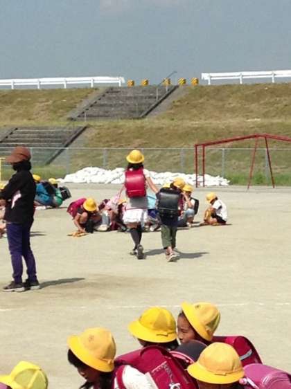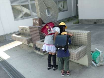 みんなが整列している中、二人の子どもが水道にいたのです。