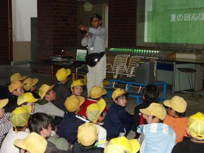 しばらく歩いてあたりが暗くなったころ、ホタルが光り始めました。あちらこちらで光るたびに、歓声が上がりました。