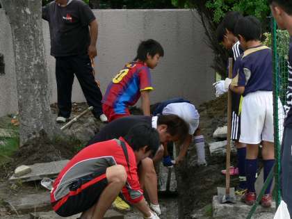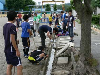 22日(土)、神領FCのみなさんに、練習の合間をぬって側溝掃除と草取りをしていただきました。おかげさまで、側溝の水は流れやすく、そして運動場の雑草も少なくなりスッキリしました。子ども達のきびきびとした行動は、さすがスポーツマン!と感じました。