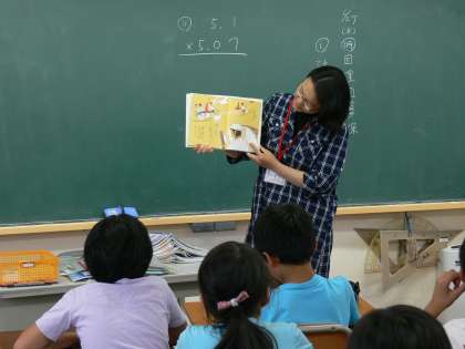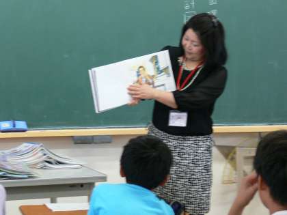 読書週間にちなんで、ボランティアの方に高学年の教室で読み聞かせをしていただきました。朝読書の時間に、日本語の本だけでなく、英語の本も読んでいただきました。
