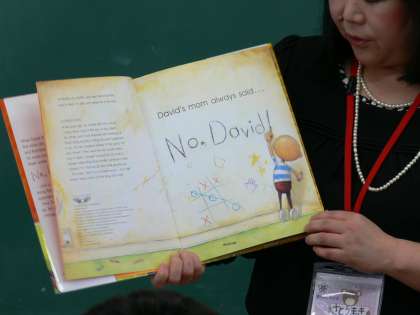 今日の英語の本「No David」では、Noに続いて、してはいけないことが話されました。「自分もしたことがある!」なんて心当たりの子、いたかな?