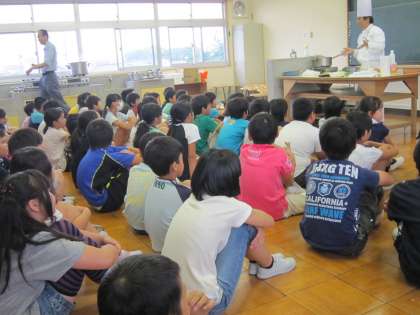 3、4時間目にシェフの課外授業がありました。3時間目には2組が、4時間目には1、3組が「食」についての授業を受けました。シェフが作ったスープを飲んで味覚に関する勉強をしたり、世界三大珍味を実際に見て匂いを嗅いだりと普段の学校生活ではできないことを体験することができました。どの子も興味を持ってシェフの授業を受けていました。