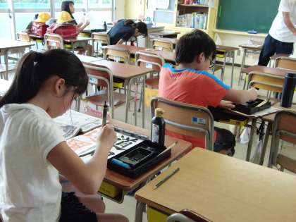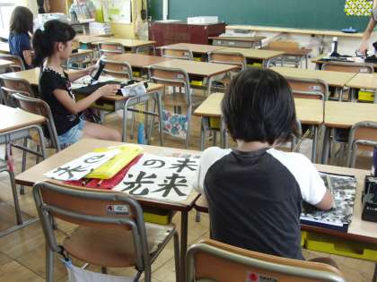 10月26日に小野小学校で行われる席上揮毫大会の選手決めが、授業後にありました。どの学年も数名ずつの児童がチャレンジしました。書いている様子は真剣そのもの、さすが、選手になりたいという気持ちがあふれていました。