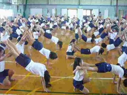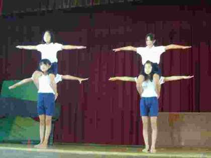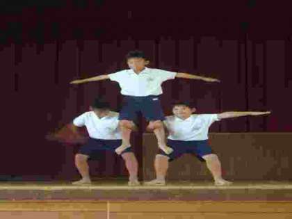 組み立て体操の練習を体育館でがんばっている様子です!。