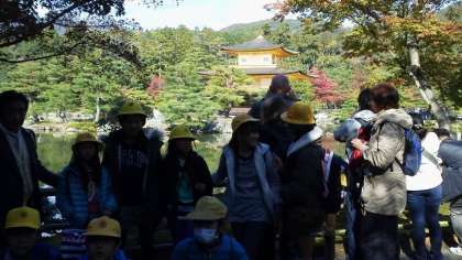 きんきら金閣の様子です。先ほど電話があり,「みんな元気で班別行動に出発します♪」とのことでした。