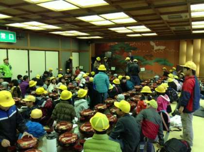 昼食も終わり,携帯電話をもって班別学習の準備をしているところですね。