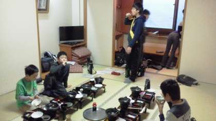 朝食の様子です。昨日はちゃんと眠れたんでしょうか?
