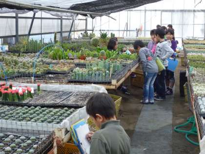 午後は後藤サボテン園の見学です。小さなサボテンから、自分の身長よりも高いサボテンまで、様々な種類のサボテンを見ることができました。お気に入りのサボテンを見つけて、一生懸命スケッチしている子もいました。