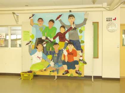 もう一つは、児童昇降口前に展示してある5・6組児童の作品です。けやきの子作品展に出品したもので、サツマイモの収穫の様子を表現しました。