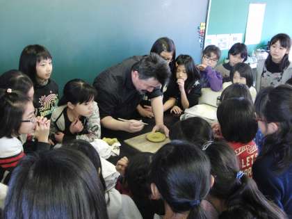 引き続き6時間目に、チャレンジクラブの児童が松田先生の指導でお皿を作りました。先生の実演を見た後、自分たちで作ってみました。うまくできないところを助けていただきながら、個性あふれるお皿ができあがりました。