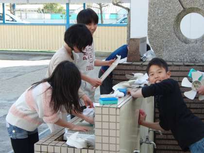 お世話になった学校をきれいにするために、6年生のみなさんが奉仕活動を行いました。換気扇やトイレの掃除、窓ふきなど、ありがとうございました。