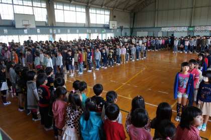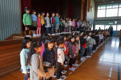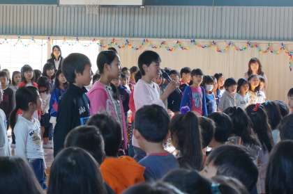 始業式の後、1年生と在校生がお互いにあいさつを交わす対面式が行われました。