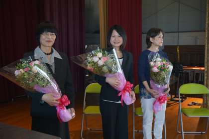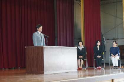 14日(月)、学校を去られた先生とお別れをする離任式がありました。