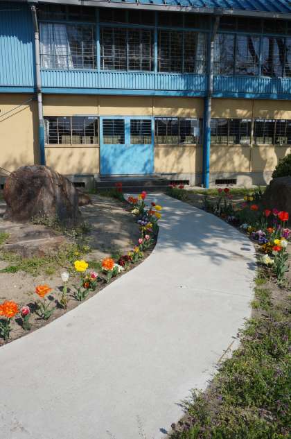 花壇の花はもちろんですが、体育館横通路の花もきれいに咲き誇っています。