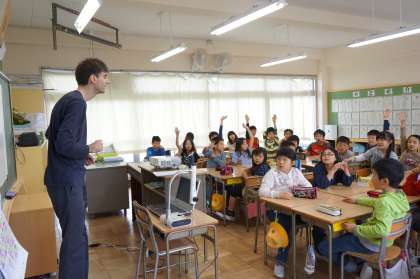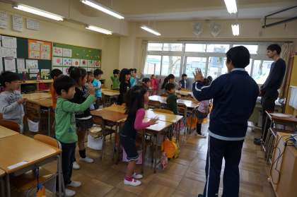 今年もまた、ルド先生に来ていただいて、外国語活動の授業を行います。今日は第1回目。1年生と4年生でした。今年も楽しく学習できそうですね。
