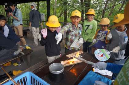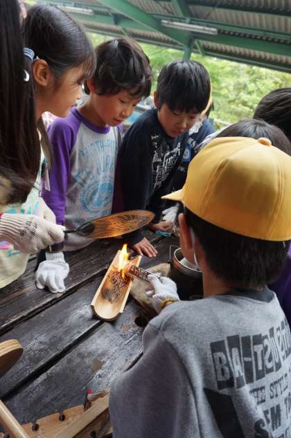 グループで協力しないと、なかなか火がつきません。うまくできたグループは2回目、3回目の火起こしに挑戦していました。