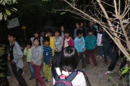 ナイトハイクに出かけました。虫の声、鳥の声を聞きながら暗闇の中を歩きました。静かにしていると、いろいろな鳥の声が聞こえてきました。