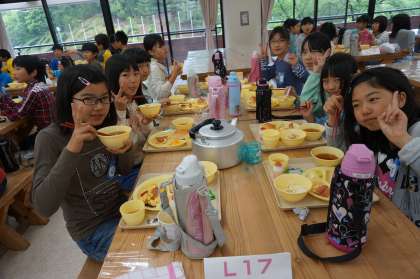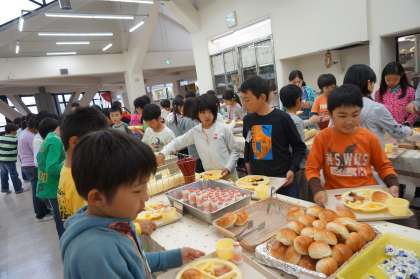 おかわりをする食欲全開の子がたくさんいました。ご飯よりもパンのほうが人気でした。(パンのおかわりは、あっという間になくなりました)