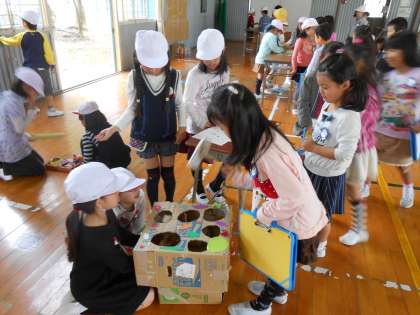2年 おもちゃフェスティバル 2 公開日 2015/11/20 更新日 2015/11/20 学校の様子 おもちゃフェスティバル第2部では、1年生を招待し、楽しんでもらいました。 遊びに来てもらえるように大きな声で呼び込みをしたり、上手に遊びの説明をしたり、2年生らしい姿が見られました。