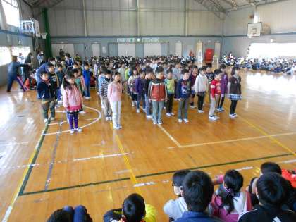 卒業生を送る会が行われました。1年生は、6年生に本当にお世話になりました。通学班、ふれJ、そうじのお手伝いもしていただきました。また、放課に6年生に遊んでもらっている姿をよく見かけました。