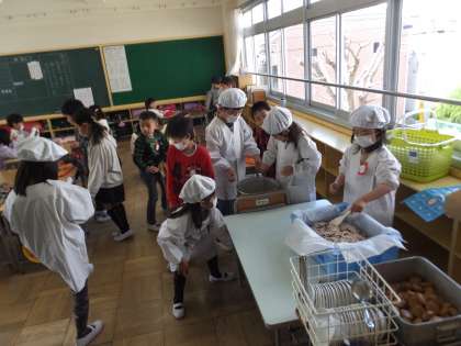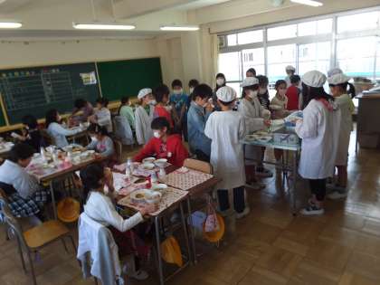久しぶりの給食でしたが、どのクラスも手際よく準備でき、楽しく会食の時間を過ごしていました。