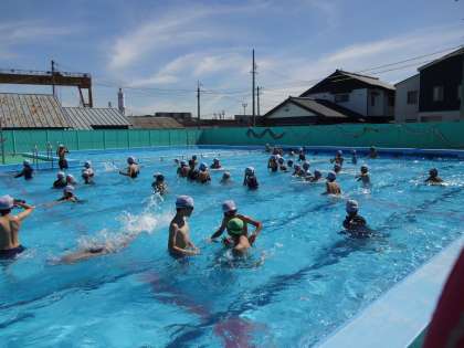 5・6時間目に今年度初めての水泳の授業を行いました。青空のもと、楽しくプール開きをすることができました。