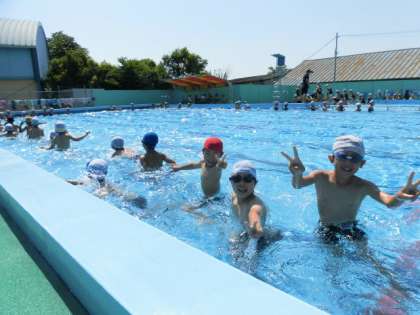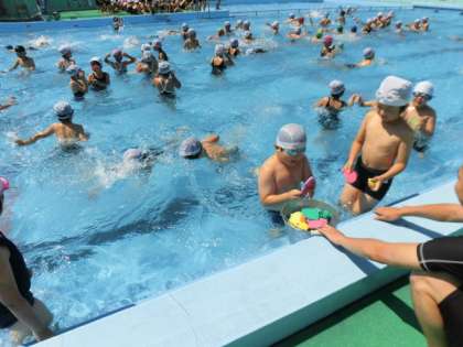 天気にも恵まれ、プールの授業を行いました。宝探しゲームをし、みんなで楽しくプールに入りました。