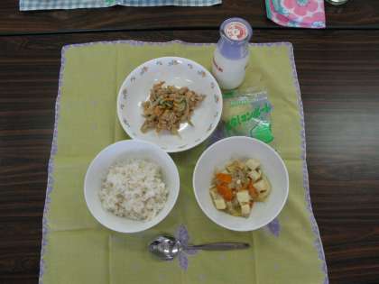 6月20日(火)じんりょうカフェに引き続き、給食試食会を行いました。講師に学校栄養教諭の半澤克枝先生をお招きし、学校給食の大切さや給食のレシピのことについてのお話を聞きました。講義のあと給食を試食しました。本日のメニューは、牛乳・麦ご飯・とうふの中華飯・ごぼうサラダ・冷凍洋なしでした。普段子どもたちが食べている給食を味わいながらおいしくいただきました。
