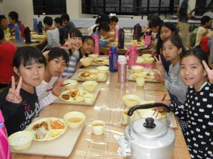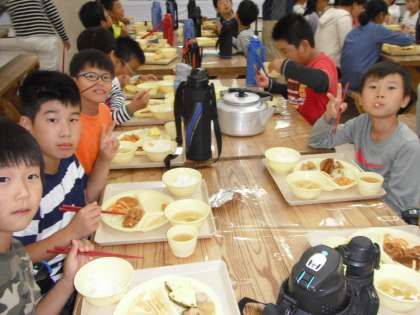バイキング形式の夕食、みんな、モリモリ食べていました。