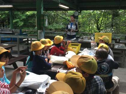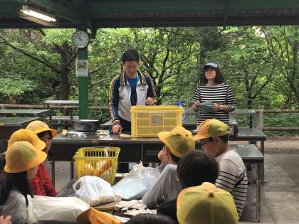少年自然の家の先生、佐藤先生から説明を聞いて、野外炊飯開始です。