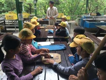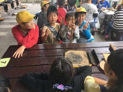 火起こしの仕方について、少年自然の家の先生に教えていただきます。