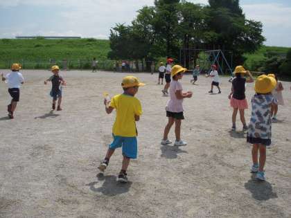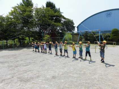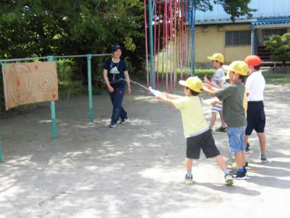 1年生は、ペットボトルやソースの容器など、いろいろな水鉄砲を持ち寄って遊びました。的を狙ったり、遠くへ飛ばす競争をしたりして楽しみました。水がかかってしまった子も、暑かったので気持ちよさそうにしていました。容器のご準備、ご協力ありがとうございました。
