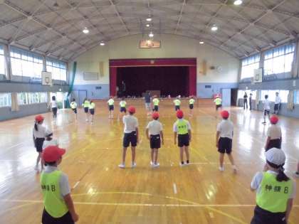 7月25日(火)、雨のため、陸上大会は27日(木)に延期になりました。児童は朝から、27日に向け、練習をおこないました。