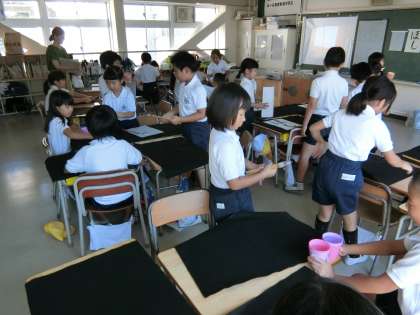 書道科の水習字の授業がありました。1学期に勉強したことを思い出して「ほし」を書きました。