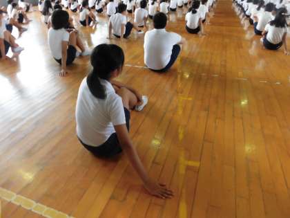 運動会練習[集団行動]が始まりました。立ち方や座り方、回り方などの練習をしました。みんなで息を合わせて、良い演技ができるように頑張りましょう。