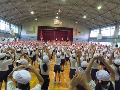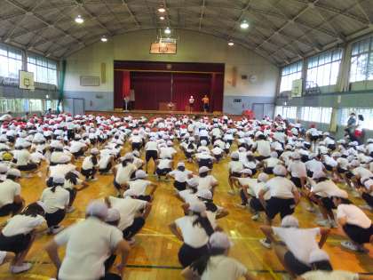 本日は雨のため、体育館で準備運動の練習をしました。きちんと向きまでそろうと、とてもきれいです。しかっり意識してできると良いですね。