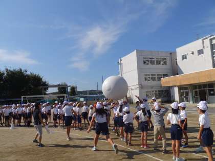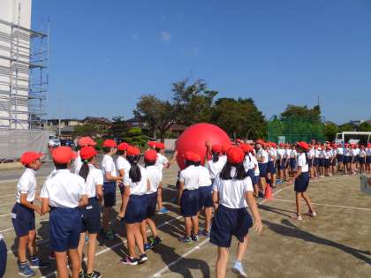 大玉送りの練習を、全校で行いました。今日は2回戦とも赤組の勝利でした。さあ、本番はどちらが勝つでしょうか。赤組、白組どちらも頑張ってください。