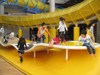 モリコロパークの児童総合センターは、いろいろな遊び場が工夫されており、子どもたちがおもいきり遊べる施設です。係の人のお話を聞いた後、数人のグループに分かれて遊びました。