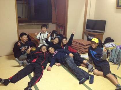 男子の方が早起きで着替えも早かったそうです。部屋での1枚です。
