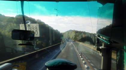 大竹口先生からのメールです。そのまま載せます。「京田辺市の高速道路を走っています。今日はよく晴れています。みんな疲れもなく元気です」だそうです。ほんとにいい天気ですね。